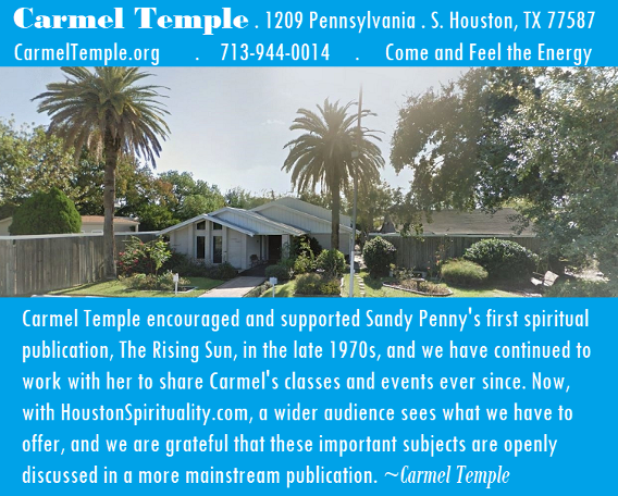 Congratulations to Houston Spirituality and Sandy for another year of Light and energy for all of us. During this intense time of change, Houston Spirituality continues to be a beacon of hope for those seeking positive ways and resources to create their best. It’s a privilege being a part of the powerful spiritual movement that Sandy Penny and Houston Spirituality initiate, encourage, and support through its special wisdom and information. Thank you for all of the contributions that you make to our spiritual community and beyond.” In Light, Nancy Robinson | Vignettes from Angelic Realms