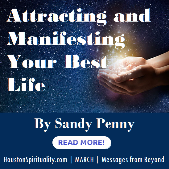 As a seeker, teacher, traveler, and a woman of wisdom, Sandy Penny has explored many metaphysical topics and experiences. She began her conscious study in 1975 at The Chapel of Prayer in Houston with Rev. Eleanor Button, now passed on. Eleanor taught so many famous metaphysicians that she was known worldwide. Sandy first explored remembering andopening her own psychic and healing abilities. She continued learning meditation, contemplation, channeling, mediumship, healing, and as her abilities developed and strengthened, she began to get messages of importance for a larger audience for the greater good. She learned to take many leaps of faith to get to new levels of psychic, emotional, energetic, and cosmic connection.